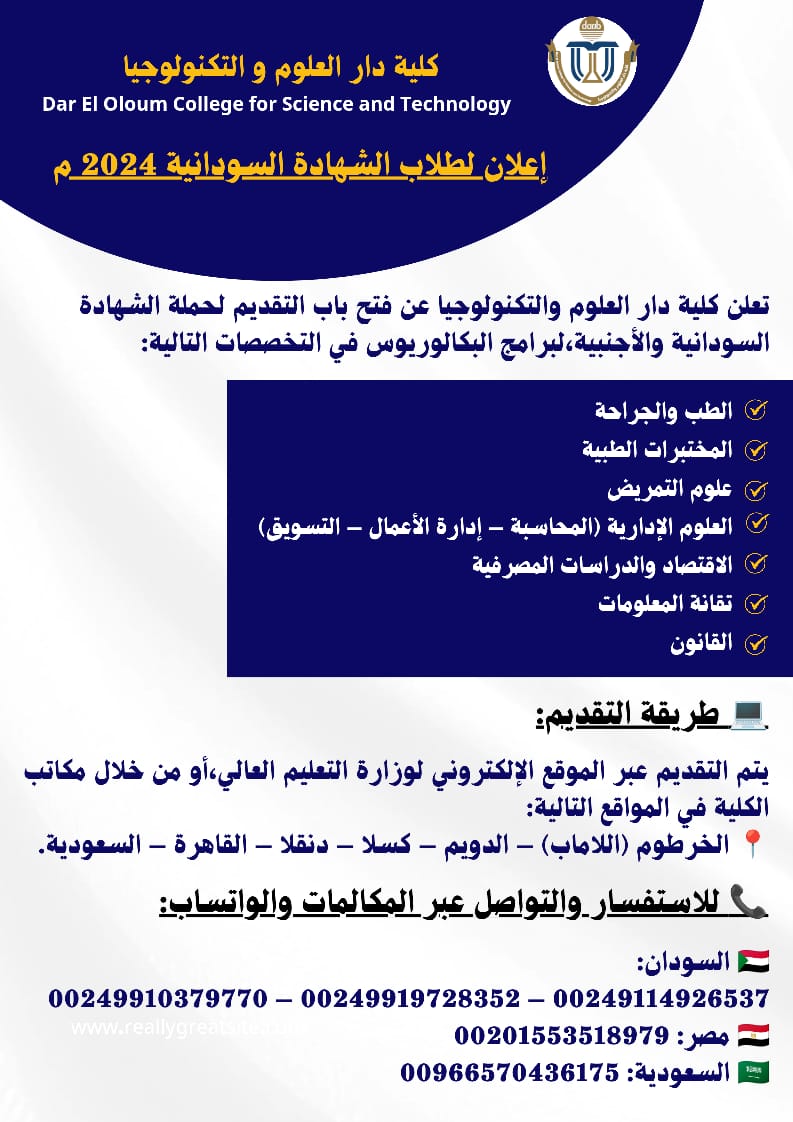 Dar El oloum College for Science and Technology started the first semester examination on 12 February 2023 for administrative science program, economy and banking studies, law, information technology and medical laboratories. The examination will continue until 23-2-2023. The first sessions were honored by Prof. Omer Mohammed Altoum, the chairperson of the trustees’ board and Prof. Ibrahim Mohammed Adam, The college Dean.